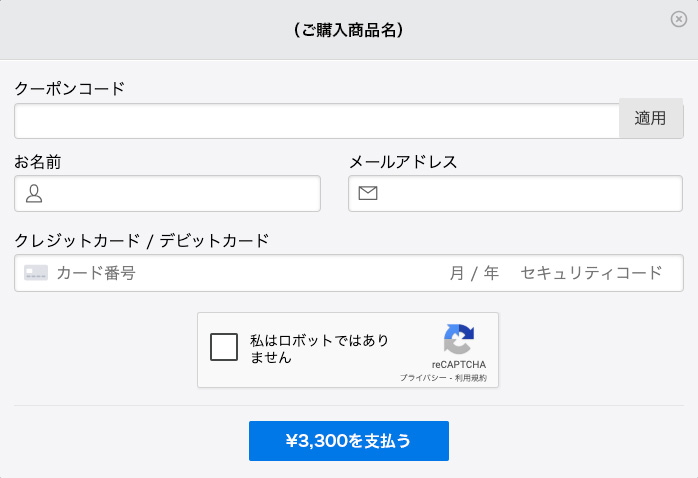 (もし有効なクーポンコードをお持ちの場合はクーポンコードも記入します)